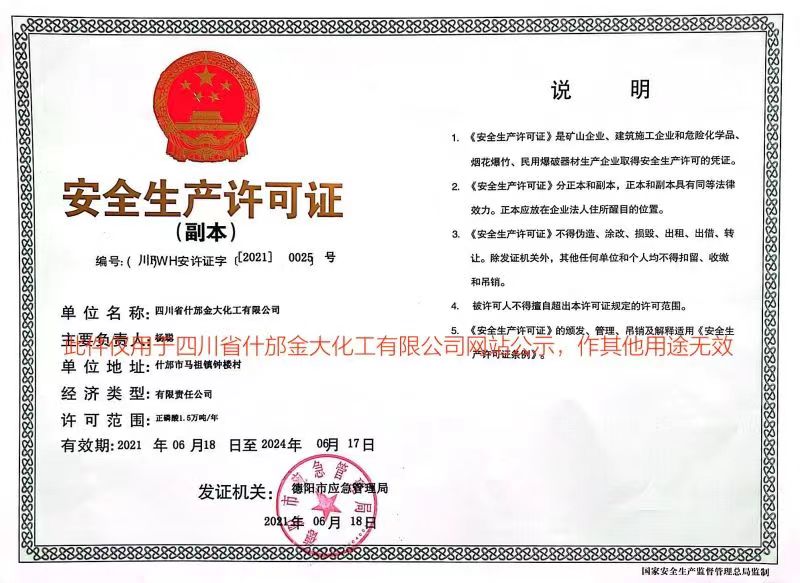 公司主要生產(chǎn)工業(yè)級(jí)磷酸及精細(xì)磷酸鹽化工產(chǎn)品,主要產(chǎn)品年生產(chǎn)能力為:工業(yè)磷酸15000噸,磷酸二氫銨3000噸,磷酸二氫鉀13000噸,磷酸三鈉1000噸,優(yōu)級(jí)低砷磷酸氫二銨3000噸。金大化工擁有進(jìn)出口權(quán),產(chǎn)品遠(yuǎn)銷歐美、中東、東南亞、南美洲等國(guó)家和地區(qū)。